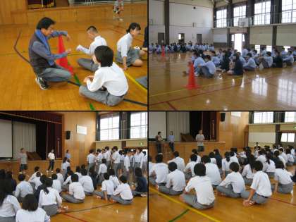 修学旅行に向けて学年で集まりました。修学旅行での集団行動の練習をしました。バスへの移動や入村式の並び方、人数点呼の練習など。短時間に多くのことができたのは全員の行動の素早さがあったからです。ほんとうにすばらしい!