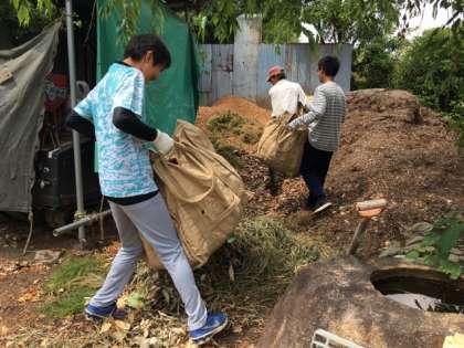 楽只小学校では実習に向けての講話、駒井萬葉園では肥料集め、大徳寺大仙院ではお茶のおもてなしをしてくれました。