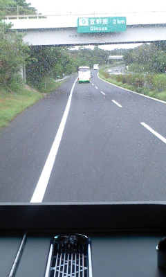 沖縄自動車道を北上して、民泊先の今帰仁村に向かっています。念願の海がバス窓から見えていますが雨です。晴れてたらなあと残念そう。でも砂浜きれいを連発しています!