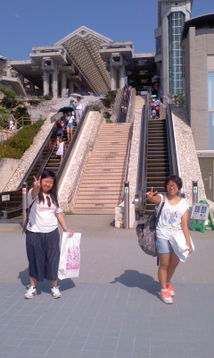 水族館前で、イエ〜イ!