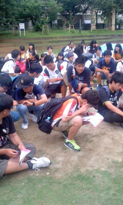 写真は、牧志公園に到着して、諸注意を受けているところです。