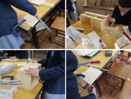 1年2組の技術科の授業では、木工製品の切削加工を行いました。