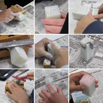 3年2組の美術科の授業では、石の彫刻の制作に取り掛かりました。