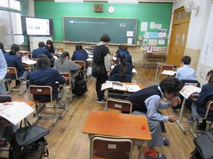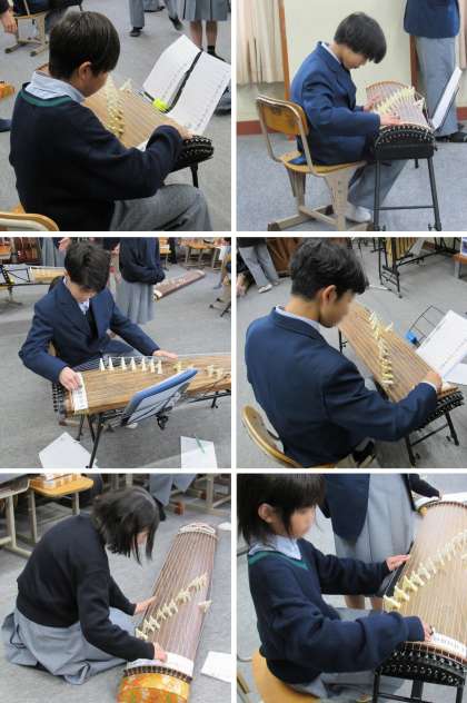 1年4組の音楽科の授業では、筝曲「さくらさくら」を実際に箏で練習をしました。