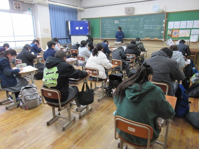 3年2組の英語科の授業では、テスト返しと振り返りに続いて、過去問にチャレンジしました。