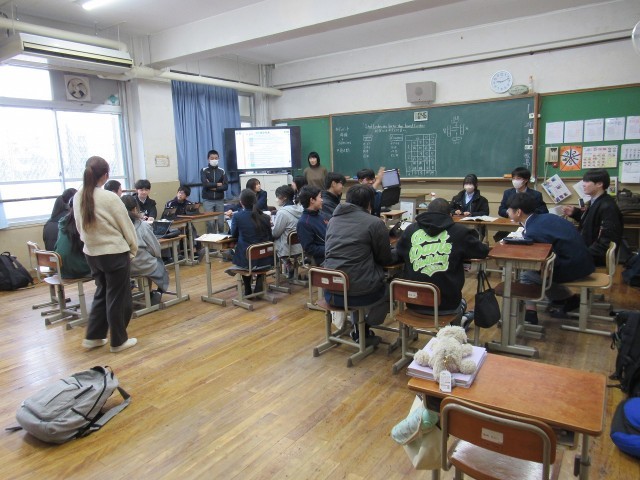 3年3組の英語科の授業では、「給食は、お弁当より良い」というテーマで、賛成派と反対派に分かれて英語でミニディベートをしました。