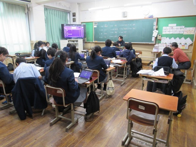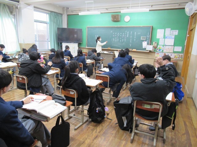 1年4組の英語科の授業では、定期テストに向けて、文法の復習をしました。