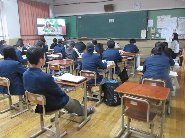 2年2組の理科の授業では、アマゾンの森林消失や温暖化について動画から学び、自分たちにできることを考えました。