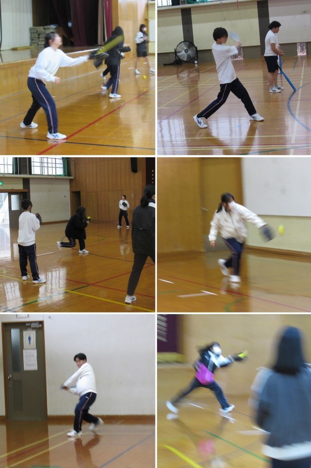 2年3組の保健体育科の授業では、ソフトボールの基礎練習をしました。