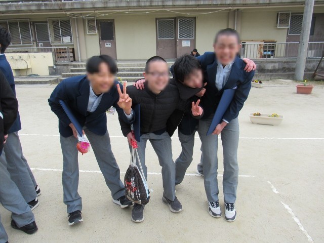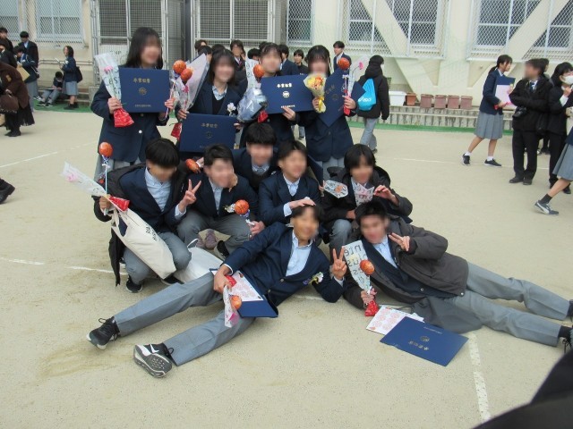 その後、グランドに戻った卒業生たち。クラスメイトと集まっての写真撮影や気の合った仲間そして担任の先生方との記念撮影などを楽しんでいました。