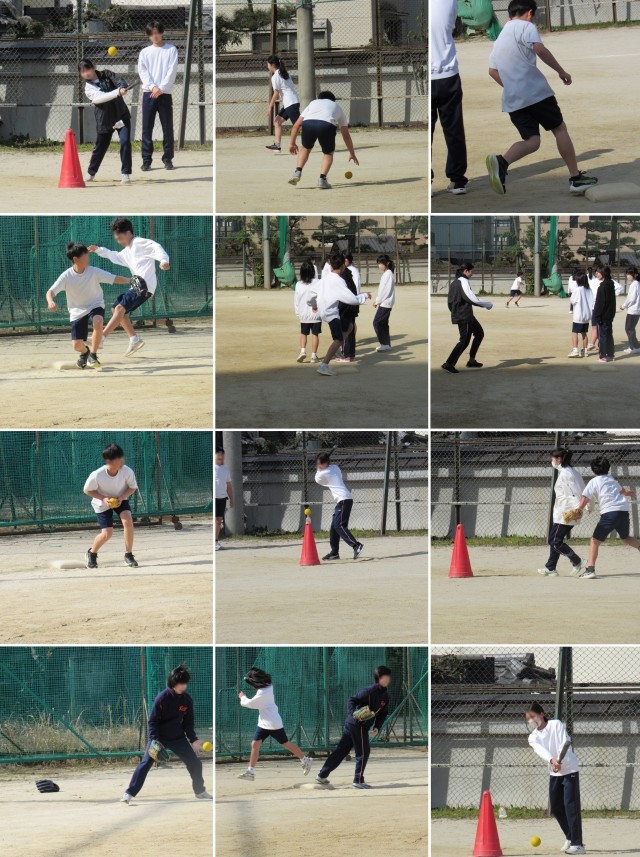 2年3組の保健体育科の授業では、1年4組とソフトボール対決を楽しみました。