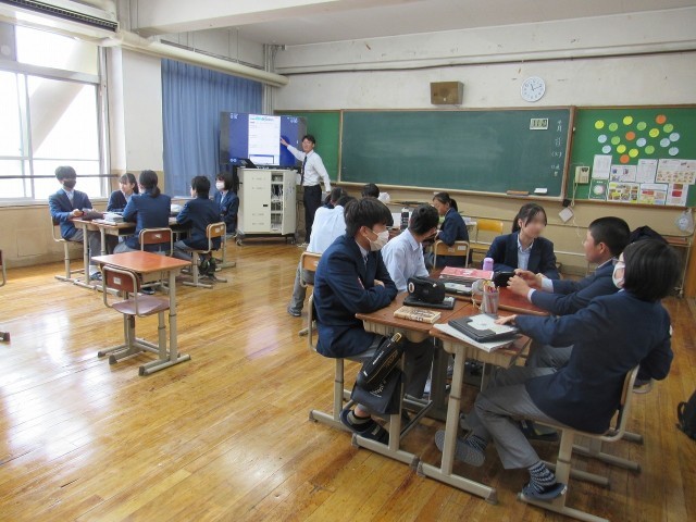 3年3組の理科の授業では、体細胞分裂の学習をし、例示された生物の成長や生殖がどの体細胞分裂で行われているか、考えました。