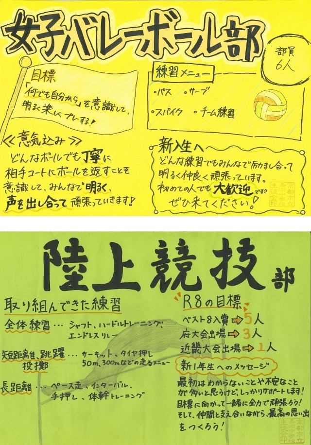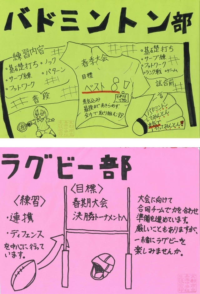本年度運動部春季大会を前にして、それぞれに掲げた目標に向かって活動すべく、各部活動のポスターを新調したので、校門横の掲示板に掲示した新しいポスターをご紹介します。