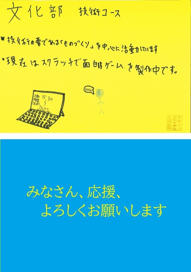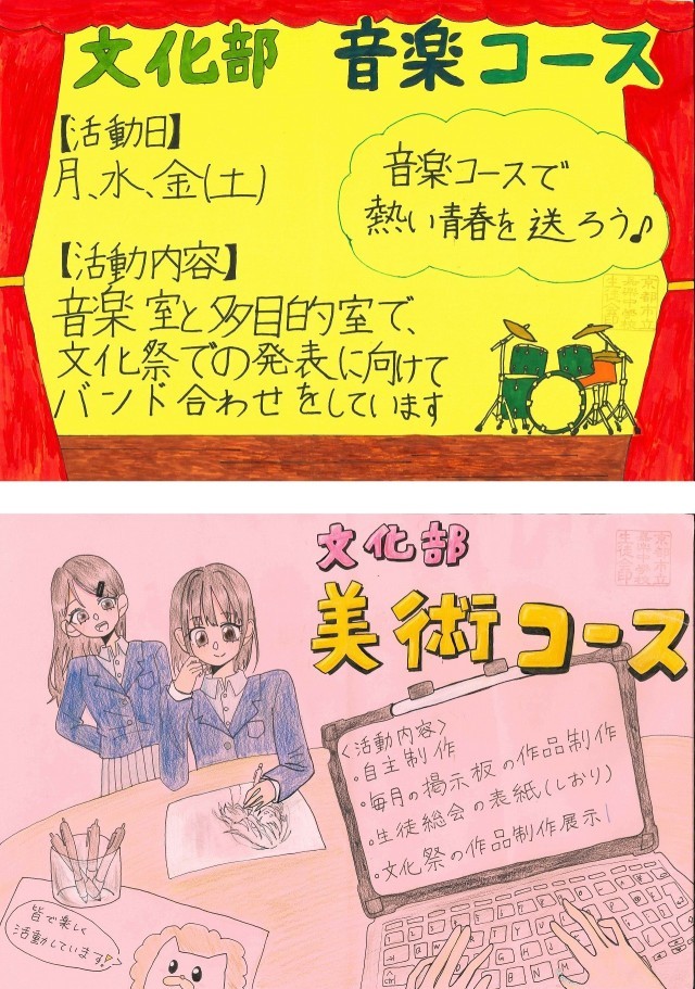 また、文化部についても新しいメンバーが加わり、活発に活動すべくポスターを新調したのでご覧ください。+3