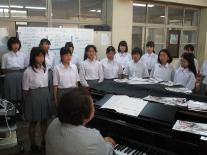 音楽の授業でそういうと、手話を交えて元気な声で校歌を合唱してくれました。