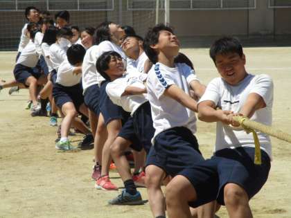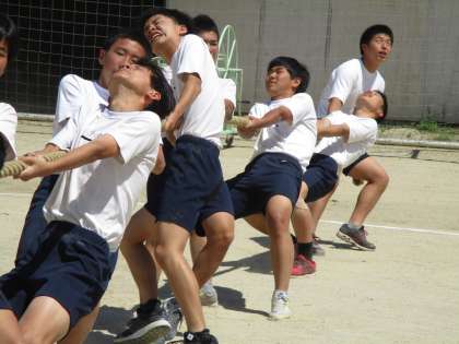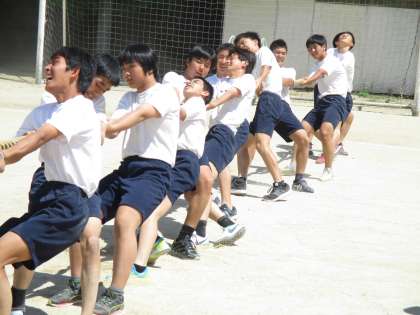 今度は、綱引きに精いっぱい取り組む男子諸君の写真です。