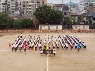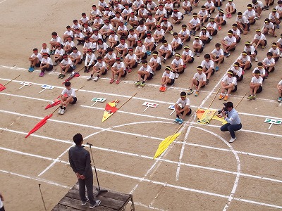 入場行進から始まり,生徒会長のあいさつ,一糸乱れぬ準備体操,選手宣誓…
