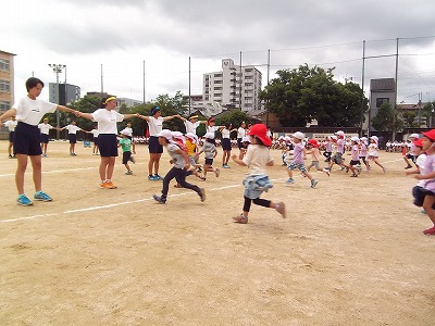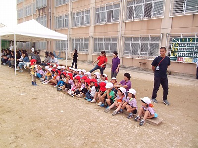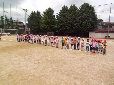 ことしも たいけんようちえんのおともだちが にじょうちゅうがっこうのたいいくたいかいに きてくれました。