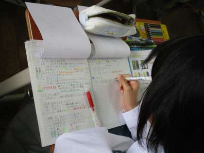理科の自主ノート作成の様子です。