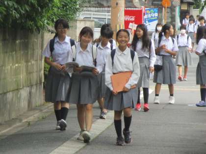 今朝は、勉強しながらくる子たちを特集しました。手にファイルやノートを持ち、友達と質問し合いながら楽しそうに登校してきます。