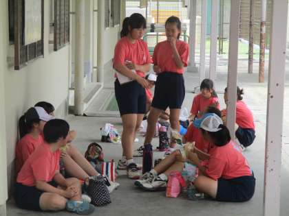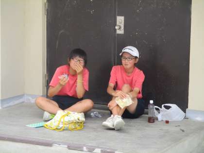 テニス部です。今日は太秦中学校に来てもらって1日練習で頑張ります。