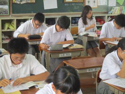 3年からは家庭科の様子から紹介します。しっかり学習していました。