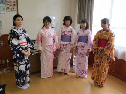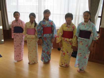 女子も上手く着ることができました。女子は色合いも柄も華やかです。