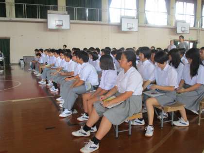 6時間目、高校から先生をお迎えしてお話を聞きました。