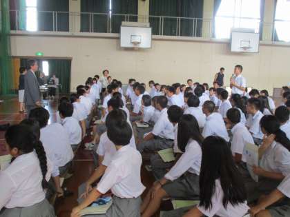 恩田校長先生には、暑い中、最後まで上着を着たままで話をしていただきました。