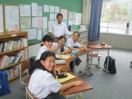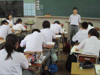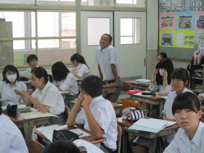 2組の教室へ行ったとき、ちょうど5時間目終了のチャイムが鳴りました。そして、生徒からかけられたのが上の言葉です。