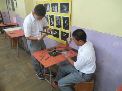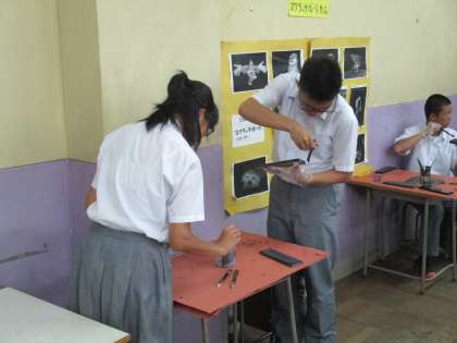 漆塗りの筆箱を制作しているのだそうです。完成したら、良い卒業記念になりますね。