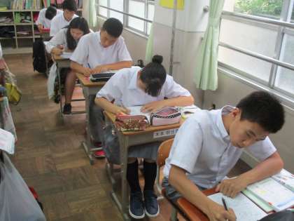2組は理科。テスト中かと思うくらいの集中力で問題に取り組んでいました。