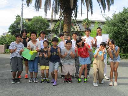 今日も、二条中のシンボルであるカナリーヤシの前で記念撮影です。