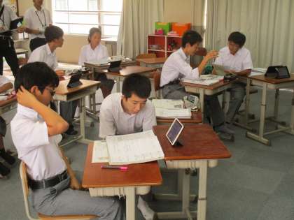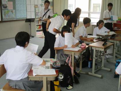 北・上支部の採用2・3年目の社会科の先生が中村先生の授業を参観に来られました。