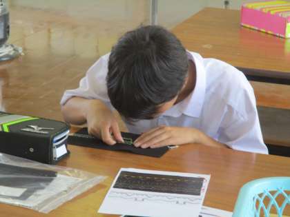 初めて被覆室に入りました。裁縫の練習です。一生懸命頑張っていました。