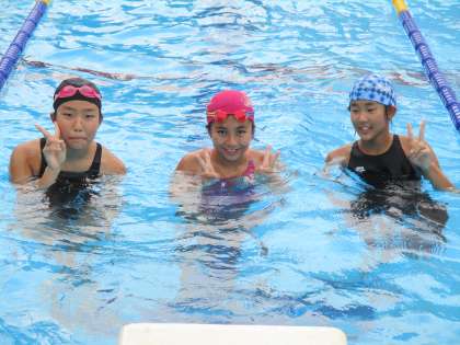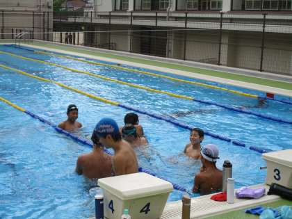 この暑いさ中、水泳部が気持ちよさそうです。