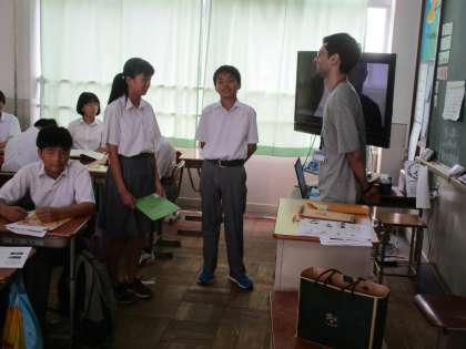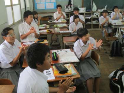 ALTのアリ先生は、今日でこのクラスが最後ということで、クラスのみんなから手作りのプレゼントが渡されていました。