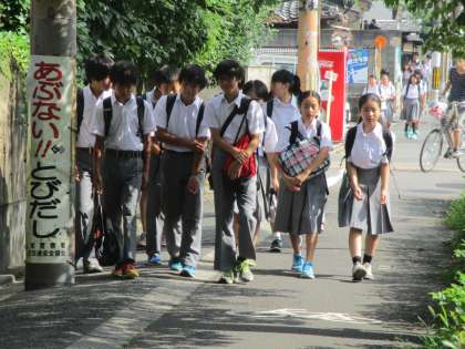 生徒たちは影を探してそこを歩いくる子が多いようです。是非そうしてください。