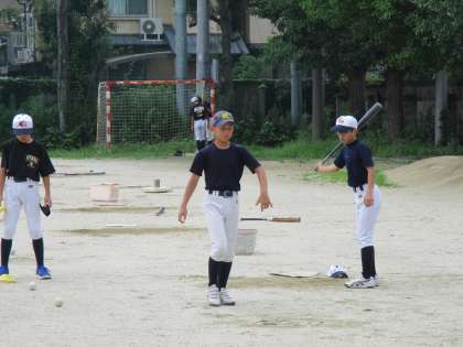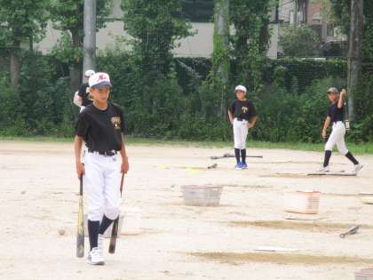 フリーバッティングの後、みんなでボール拾いです。