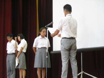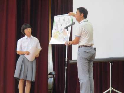 水泳競技に続いて、地域生徒指導連絡協議会主催の標語への応募作品の中から入選者に対して、会長から賞状が贈られました。