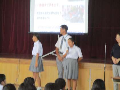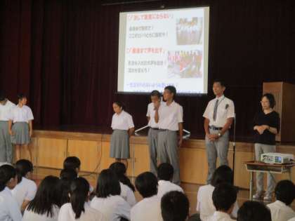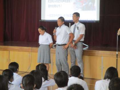 今日も学校長の話を受けて生徒が感想や決意を述べました。