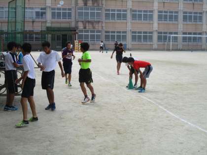 暑いグランドでは陸上部が頑張っています。