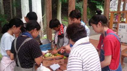 飯盒炊爨が始まりました。カレーや焼きそばを作るそうです。