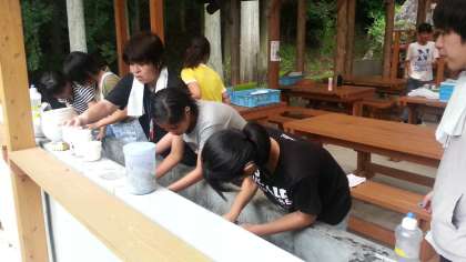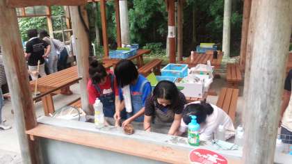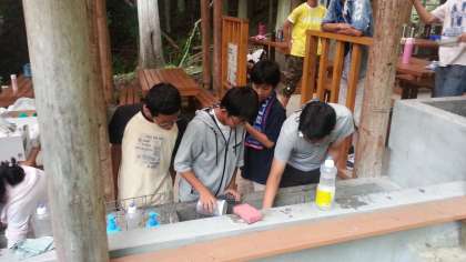 食べた後は、早速後片付けです。もの凄いチームワークで、あっという間に片付け終わったようです。