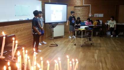 夕食後のキャンドルファイヤーの様子です。
