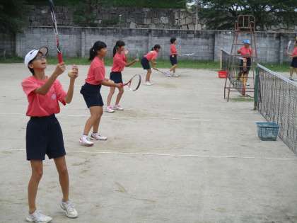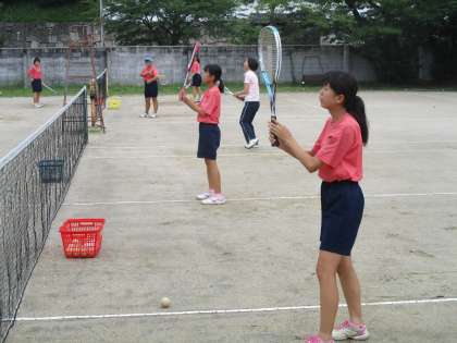 テニス部は、徐々に上達しています。9月には新人戦が始まるので早く強いボールが打てるようになってほしいと思います。
