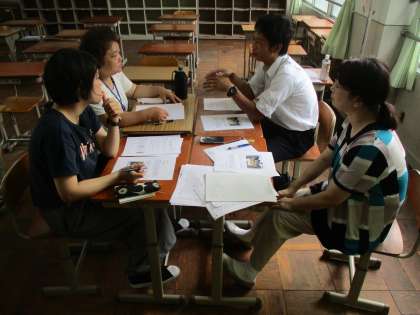 この時期、多くの学校が夏休み明けの授業再開に向けてこういった研修を行っています。本校でも、道徳教育の充実に向けて研修会をもっています。