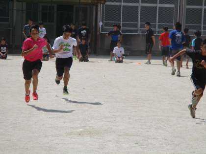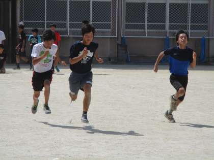 ということで、今日が夏休み最後の部活動です。暑いあついグランドでは陸上部が頑張ってやっています。