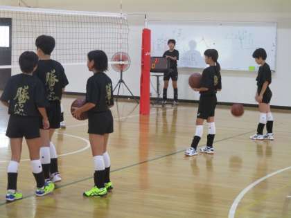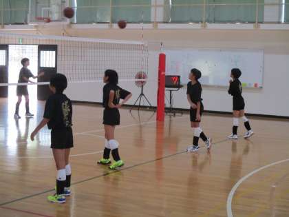 体育館ではバレー部が活動しています。新しいチームがどんな戦い方をするのか、楽しみです。2年生が3人しかいないので頑張ってもらいたいです。当然、顧問の先生の期待も大きいです。