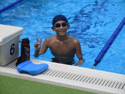 暑い中、プールの水が気持ちよさそうです。